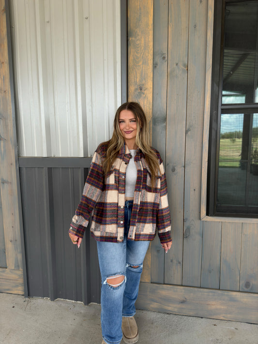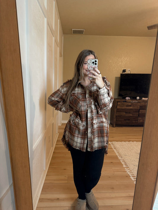 Harvest Wishes Oversized Plaid Shacket - Brown