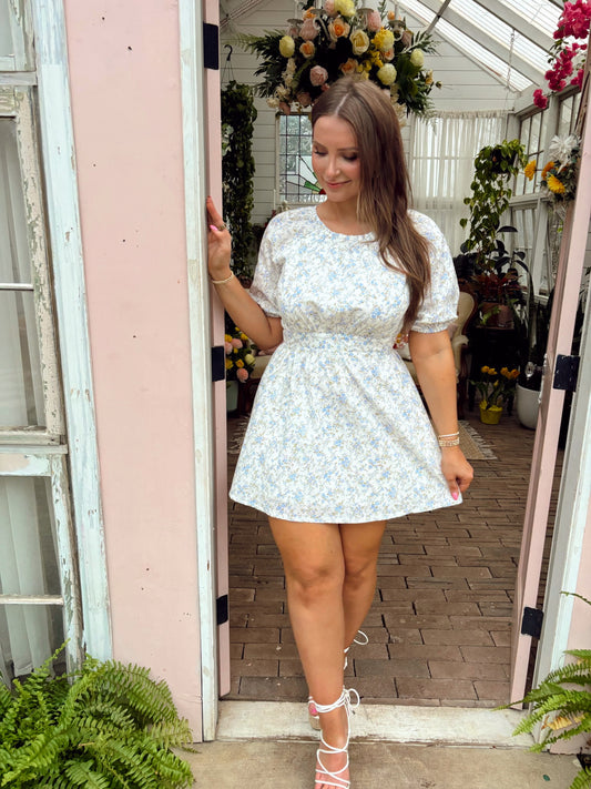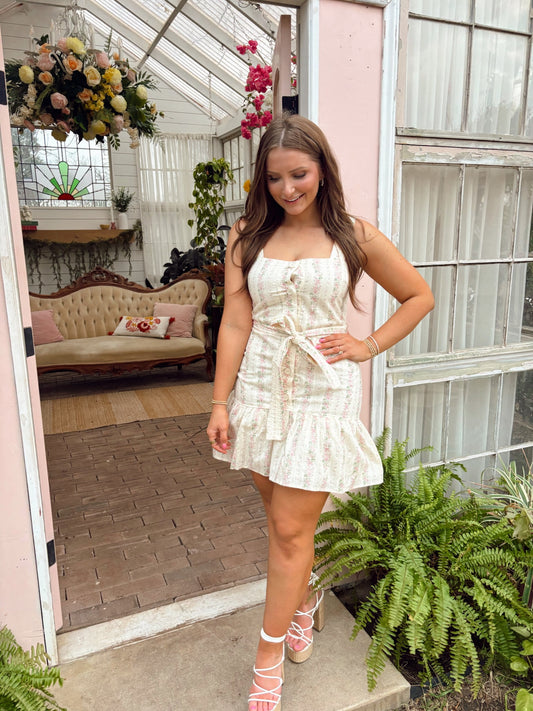 Rose Dainty Floral Mini Dress - Pink/Yellow